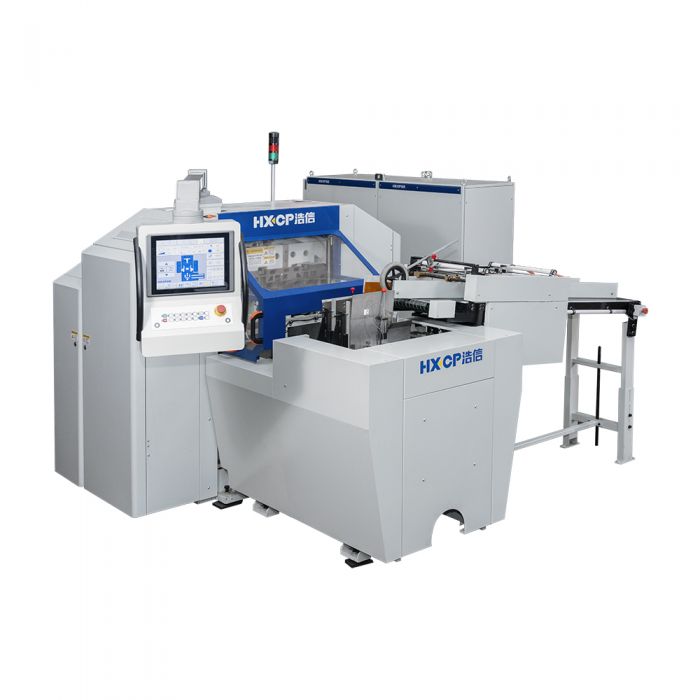 HX150DH Three-knife Trimmer is the ideal high-speed three-side cutting equipment for perfect binding books, can be used alone, and can also connect with the high-speed perfect binding line, to achieve stable high-speed three-side trimming of perfect binding books and book blocks, with the speed of 4,200 cuts per hour, that's why HX150DH Three-knife Trimmer can perfect match with the high-speed perfect binding line, which with the speed can be up to 18000 books per hour. Adopting the stream feeding method to feed the books into the stacking station, adjust the height of the pusher to push the books to realize multi-book cutting.