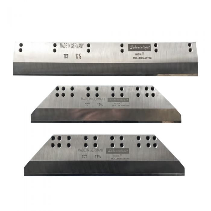 Fitting for all Müller Martini Three Knife Trimmers, including Granit and Solit PRO, etc., precise dimensions, high-quality steel, durable using, reducing the blade changing, adjustments, and blade sharpening times, extend the service life.